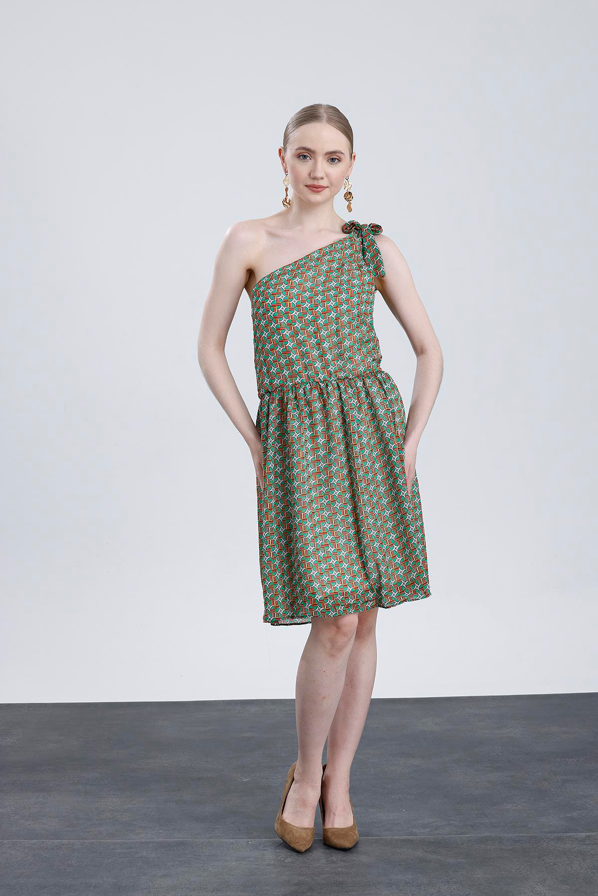 Desenli Tek Omuz Elbise